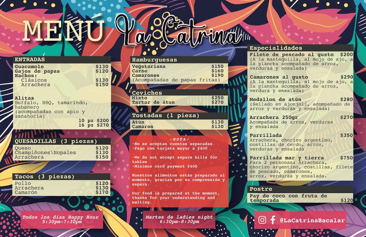 The menu at La Catrina Bacalar stands out not only for its authentic flavors but also for the attention to detail in preparation. Whether you’re a local or a visitor, this restaurant promises an unforgettable culinary experience.